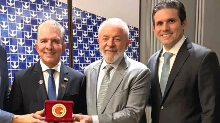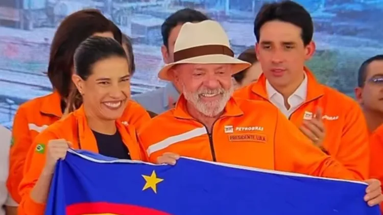 Raquel Lyra dá bandeira de presente a Lula e pede foto em Ipojuca (PE)