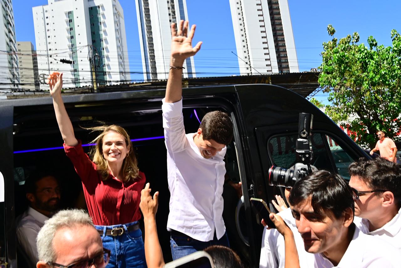Marília Arraes e João Campos durante lançamento da chapa